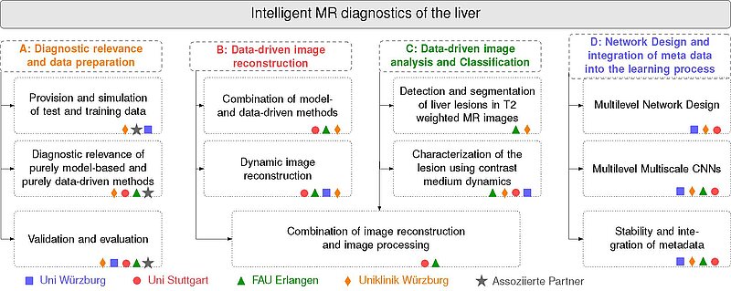 Detection and evaluation of liver lesions by image analysis, supported by automatic, deep learning based procedures. Analysis of reconstructed MR images to determine characteristics of the lesions (e.g. contrast agent dynamics, visual appearance) Combination with methods of image reconstruction from B to enable direct classification on raw data.